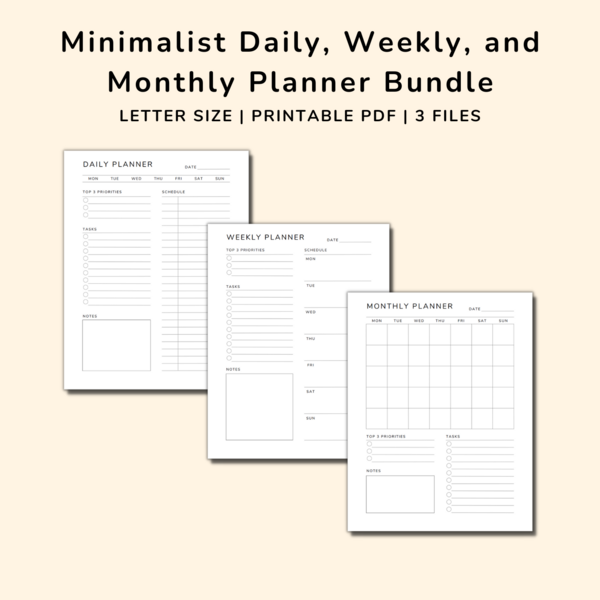 Minimalist Daily, Weekly, and Monthly Planner Bundle